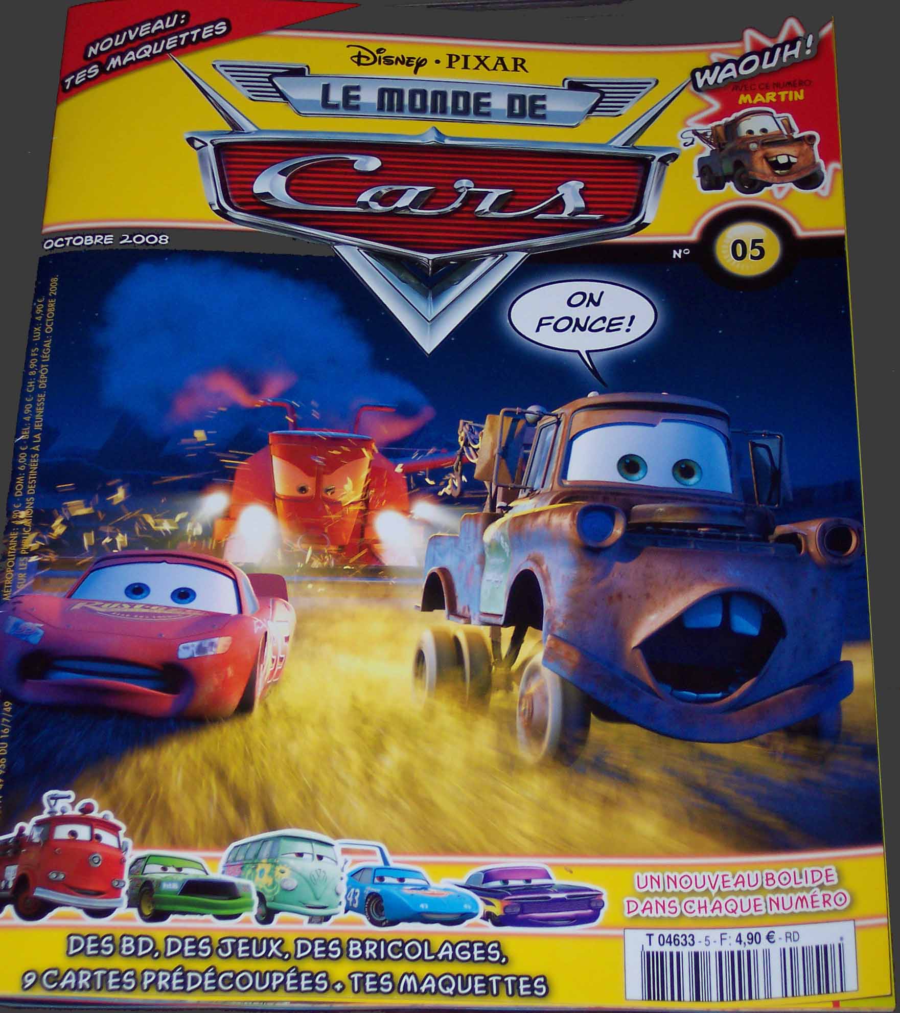 Voici le tout dernier numéro du nouveau magazine de chez Disney – Pixar, Le monde de Cars. Le numéro 5 sera disponible dès le 15 Octobre dans la plupart des presses, il est consacré à Mater (Martin)