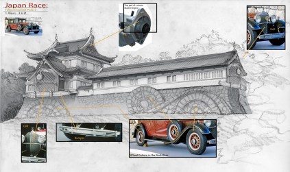 Des environnements désertiques plus que détaillés avec un ciel et une lumière très travaillés. Dans le détail, les décors sont surréalistes : les falaises comme les nuages prennent des formes de pièces automobiles. Une chaîne de montagnes ressemble à une œuvre d’art réellement présente le long de la Route 66 : des Cadillacs plantées à la verticale dans la terre ( Cadillac Ranch).